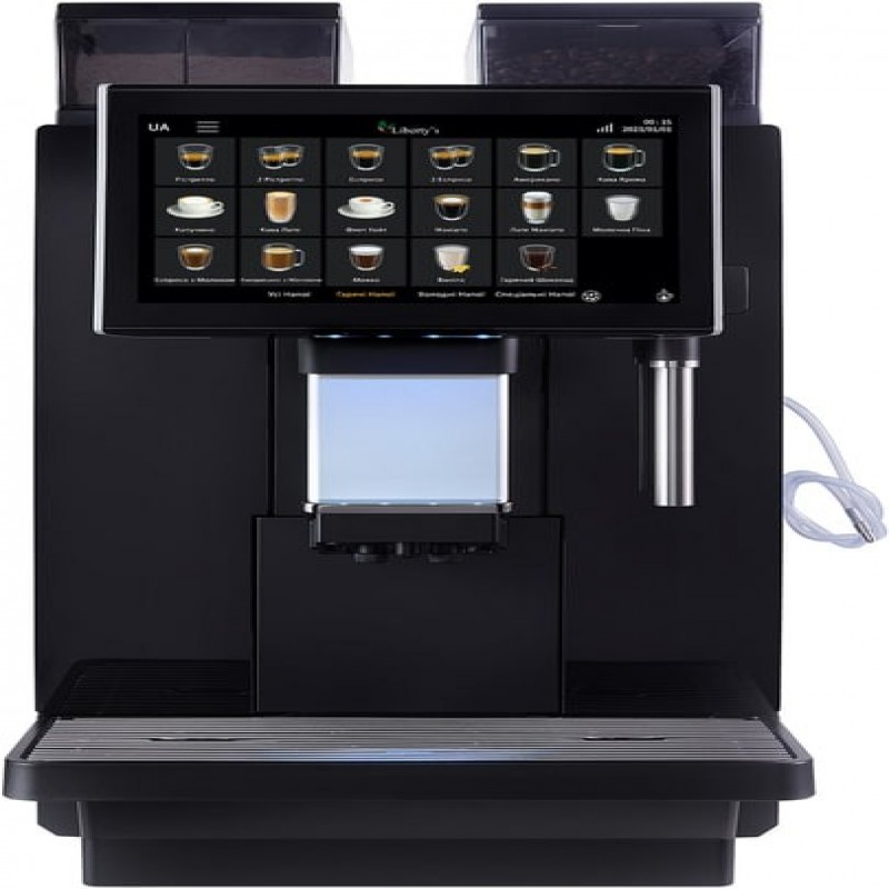 Повністю автоматична кавова машина, обладнана сенсорним дисплеєм .Тип кави - зернова.Місткість контейнера для кави - 1200 г.Об'єм контейнера для води – 4 л.Об'єм контейнера для жмиху - 70 порцій.Напруга 220-240 V, 50/60 Гц.Потужність 2700 Вт - 3100 Вт.Розміри: 340x620x545 мм .Колір – чорний.Матеріал корпусу - пластик.Вага нетто 25 кг.Виробник: Suzhou Dr.Coffee System Technology Co., LtdХолодильник для молока, опція-придбати можна окремо